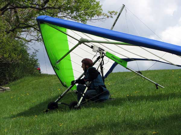 The Skydog Report Saturday May 17th Patrick O'Donnell and myself visited the Finger Lakes and camped at Hammondsport, NY. We drove to Harris Hill first arriving there at 10:30 Am and the wind in the landing are looked good but e had to go for gas first and phone the airport. When we got to launch at 12:30 the wind had subsided to about 4 mph so Patrick set up his new wills Wing Sport 2 - 135 Sq. foot glider. We waited a while but the wind never picked up to a soaring speed so Patrick finally took off for a sledder for his first flight on the new glider and it all worked out well and Patrick landed in the large grassy field where we usually land. we headed back to H-Port to set up camp and found a half dozen paraglider pilots in the air floating around above launch. Patrick was eager to set up his big tent so we did not fly Saturday evening. Sunday morning we checked the forecast and set out for Harris Hill again and this time Eric Coverdale joined us and e arrived around 12 noon and again the wind was light so Eric and Patrick set up and waited. Finally around two pm there was a few times when the wind was coming in at 8 mph so Patrick had a go at it and sunk out. Eric waited a half hour and took a cycle and went up when he took off and then Eric flew the ridge for a couple of minutes and then I saw him do a 360 and then another 180 heading in towards the hill and the last I saw Eric was stalling into the trees 300 feet below launch as far as I could tell from the launch area. I drove to the bottom and found a lot of emergency vehicles and spectators along the road near the landing area. I asked Patrick who called 911 and he said that a lady in a passing car had first called in. Patrick had hollered up to Eric and found that he was not injured so we let the rescue people look after getting Eric out of the 60 foot three that he was perched in. Patrick took a second flight and caught a good thermal on his new glider and lasted for 15 minutes. Poor Eric waited almost three hours to get to the ground and was in good spirits. Jimmy Kolynich invited Eric to stay at his home on Sunday evening. Monday Morning Patrick and I along with a Paraglider friend Sadi went to Harris Hill to help retrieve Eric's glider and in two hours we had it on top of his car and we were off to H-Port again arriving there at 5:30 and this time the wind was gusting to 30 mph so we waited and finally the wind dropped to 15 mph and I took a flight a I got above 400 feet but after 20 minutes the wind dropped off and I landed nicely at the Church. Next I saw Eric take off and Eric landed after a sledder. Eric was happy that his glider had not been damaged and that he had a flight on it before heading home. Patrick and I drove home Tuesday with only short flights under our belts. Wednesday morning I read that Tuesday was a fantastic day at Ellenville with pilots getting close to ten grand Msl so I was wishing that we had gone there with Ed and Ron. Oh well, Better Luck next time. |