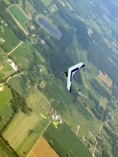 The Skydog Report Thursday June 30th Patrick O'Donnell and I drove to Cloud 9 with a forecast for partly cloudy with wind speeds up to 10 mph. Well, half way there near Flint Mi. it rained really hard for a half hour and then cloudy skies. As we approached cloud 9 field we could see clear skies coming close by so we felt less dejected. We organized our stuff and set up our gliders, Patrick with his new Wills Wing Sport 2-135 and me with the seven year old T-2. We finished setting up by 1:30 and by now the wind had picked up to 12 gusting to 18 so we parked the gliders in the shelter and made the best of what was now a sunny day. Around four o'clock Bill and Marylyn Soderquist, California pilots drove in and set up their beautiful motor home and we chatted with them and heard so many wonderful flying stories from Bill. Friday July 04, 2014 in the morning we have a forecast for north winds of 10 mph and sunny skies and by 10 am the wind is blowing up to 15 mph so we are pissed. Lots of pilots show up for the fourth of July so we are all set up and finally at 2:30 I see the wind is settling down to 10 with thermal gusts to 15 so I get my glider out and go the south end of the field with about ten others following me. Lisa comes down with the tug and tows Mark Dugan up first as I am waiting for Patrick so that I can start the GoPro camera. I am next and I have a have a weak link break at 15 feet so I hurry back to take off and Pat Winther goes next and then I get back in line and Lisa tows me up and I make it through the first rough patch but at 1,200 feet I break the weak link again but find a decent thermal and after eleven minutes I am at five grand and so happy to have got up from 1,200 fee ato. The air was rasty but the climbs were strong and very enjoyable. Brian Deimling came up next and joined me for a bit while I was searching for Mark Dugan who is usually on the top of the stack and after a half hour I finally see Mark way above me close to base and I spend a good half hour trying to get up to his weight and throughout the flight I never did quite catch up to Mark. I did get to about two hundred feet below Mark at one point but never above him. We had followed the clouds south toward Stockbridge and beat back upwind a few times when I saw Pat Winther down below me about two grand so I cruised over top of him and after a while Pat was up with me and we spent a good half hour thermalling together sometimes getting down to two grand and then back up to five grand. I was trying to get a shot of Pat with my hand held Canon but it looks like I missed him most of the time. Pat and I were thermalling a little to close on occasion and at one point the top of Pat's sail was really close, a little to close for my liking. All the other pilots were towed up but I did not see many in the air so they must have stayed upwind far from my sight. Patrick had a nice one hour flight and had a personal best climb up to 5,600 feet. I watched as many pilots landed and now it was getting late like 6:30 and Pat and I were getting down to 1,000 feet ato and we headed for the landing field and I could see Mark Dugan a grand above us heading north over the field as I landed on the spot and Pat came in two minutes behind me. We watched as Mark caught yet another good thermal and stayed up for another half hour landing with a three hour and forty five minute flight. I am not sure but I expect that Pat got 3 hours and my flight was 2 hours and 50 minutes and I topped out at 5,808 feet. Mark tells me that he bumped to just over six grand on this really strong day at Cloud 9. Bill Soderquist did a forty mile square around the area for his first flight at Cloud 9. Dave, a new pilot took his first three tandems in the evening and it looks like Dave is going to be one of our new super pilots. Hopefully more fun on Saturday. Saturday starts out cloudy but is forecast to clear by 2 pm but does not clear up until 4:30 and Mark Dugan and Bill Soderquist and Tom get towed up and seem to be staying high as I leave for home. I had taken two tows earlier but only survived for 20 minutes and 14 minutes so the later flights worked out much better. I have not heard yet how much airtime the pilots got. Will let you know later. |
