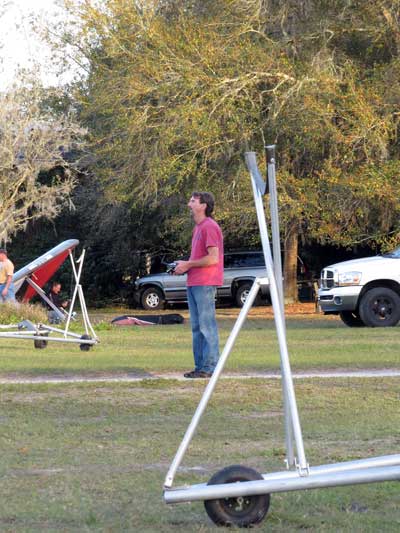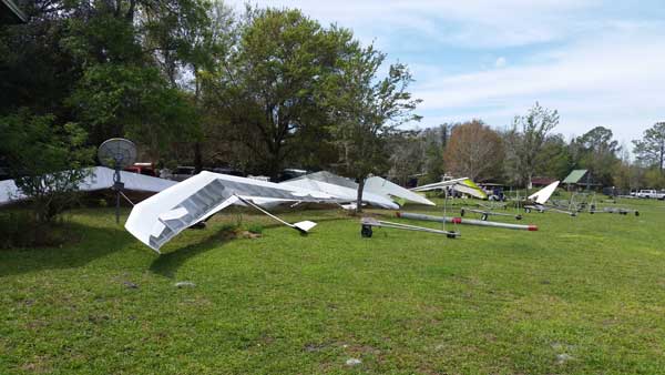 The Skydog Report Thursday March 12, 2015 Here we go again. We took off around 2 pm with 16 gliders including four rigids. At first lift was good but sink was also big so I got sucked to the ground and took another tow and by now the lift was closer together. Oded was up at base and I joined him at 5,300 feet. During our three hour flights at least two sailplanes joined us over the orange groves. My buddies from Cloud 9 showed up Thursday morning and Chris Christopherson and Tom Niblock both were thermalling at base with us. Later in my flight I joined up with Eric Paulson and Griffin from NH and they led me close Hyw. # 4 where there was a good line of lift up to 5 grand. I finally got out of my comfort zone being to far away from the landing field so I headed back and noticed Oded landing just before me and shortly after Griffin and the Eric came zooming in for nice landings. It was a great day with some monster climbs and easy to stay just below the clouds. My flight times were 20 minutes and 2 hours and 53 minutes and I topped out at 5,470 feet ato. Oded had one flight for 3 hours and 17 minutes. Friday Windsurfing at Cocoa Beach 3 hours. Saturday morning starts out windy but by 2 pm it has calmed down some so I take off and get a 40 minute flight p to 3,704 feet. By the time I land others are getting towed up and I get in line and go again for a 24 minute flight and I find lots of sink and land. After lunch break Fay tows me into a good one in the blue and I follow it back to the northeast and it really turns on. I get to thermal with Kevin from Alberta, Canada and then Oded joins us for a bit and next I am alone for a while but then I see Rick Bremer on his Ghostbuster farther North close to Publix which is 5 miles out so I core my way up and join Rick and we thermal together for a half hour. A big dark cloud approaches and we split and I head for a sunny field to the south and when I get there I get a little beeping and work my way toward Wallaby Ranch for a nice landing after a 1 hour and 46 minute flight. Oded has a nice 2 hour flight and tom Niblock got up to 6,300 feet and the best I showed was 5,088 feet ato. More tomorrow. Sunday has a forecast for light winds but when noon comes around it seems windy enough that the pilots are not eager to be first so around two PM I get some enthusiasm going and pilots start heading for the east launch. Griffin and I get off after a couple of others and get into some good lift over the warehouses. The rigid wings including Oded are leery as it seems gusty on launch but a half hour after I launch Oded takes a tow and gets up with the others that are staying high. There is a sailplane competition from Sandhill soaring Club so we must keep an eye out for them as they pass through. I found the best lift over and past the warehouses to the east. Oded on his VQ and a sailplane piloted by Steve Arndt come up below me for a video shot that I will post on Youtube later. After an hour I am in sink and get down to 1,100 feet ato and prepare to land but I find some lift east of launch and take it back up to 4,500 feet and feel as though I am back in the game. After finding sink again I land with a 2 hour flight. I am back in line and up again in ten minutes and this time I last for 30 minutes and sink out again and Oded and Rick Bremer are staying high like 4,700 feet ato. Oded lands after 3 hours and 22 minutes and Rick lands close to 7 pm as usual. It was a great day for many and some of us found the sink too often. Monday is a spectacular day of Hang Gliding. Tom Nejame had the bug to fly to Quest Air and meet up with Larry Bunner and Davis Straub who had plans for a big triangle and so Tom took an early tow out of here at 11 am. We all thought that he would likely sink out as the cummies were just starting to show but sure enough Tom was at base before we knew it and heading north. Later in the day Tom was back with a story of a great flight where he chased Larry and Davis and finally caught up with them and soon left them on his journey around the swamp and other locations totalling a distance of eighty-eight miles calculated by Larry Bunner. Tom had his usual happy face after landing back here at Wallaby Ranch. Griffin, Oded and I got out to the oak tree launch around one o'clock and Griffin took off first and me next then Oded and many others followed. Lift was great with lots of 1,000 fpm up so base was a cinch. Oded came in close for some good video shots. Also I had a Bald Eagle come within 30 feet from my tip and he smiled as he posed for the camera. My favourite part of this flight is thermalling with the birds and that lasted for a minute or so. I like the way they keep jerking their heads around to check me out. Later in the day Mikey Barber and I thermalled together as he was working his way south to Bok tower. Aric Paulson joined us and went to Bok with Mickey and they returned around 5:30 with big smiles. I think that is about a forty mile return trip. Chris Christopherson had a shoulder injury muscle injury so he was unable to fly today but his travelling buddy Tom Niblick had a wonderful flight with all of us. Another very special event in my flight was that while I was climbing above base the magic circle glow appeared on the side of a cloud and there was a shadow of my glider pasted in the center of the Glow. As I flew toward the circle the shadow became very large and looked like my glider was two hundred feet wide as I dove into it. OK so let's try that again so I circled around and made another pass and sure enough there it was again even more distinct. It was fun adjusting my glider angle so that the shadow changed shape. I circled around four more times getting different effects. The Glory happened after two hours into my flight so the GoPro was exhausted by then so no photo or video. Darn it again!! There is so much more to tell about this flight but my memory is wearing thin so I will try to get others to fill in the blanks
