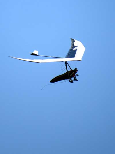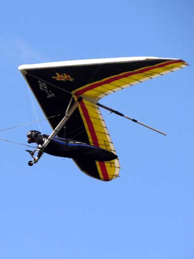 The Skydog Report Monday February 22nd and we have fun again. Tom Nejame gets towed up at 11:30 and goes on a long trip and lands after 4 hours in the air on his Atos VX. Patrick and I get off at 12:30 and Fay Barber puts us both into great lift and mine is over the warehouses while Patrick is towed to the South close to Hyw 4. Our first thermals get us both over 4 grand and after 30 minutes Patrick is on he ground and I get lucky and find lift when I get down to 1,100 feet and I get back up to 5 grand. Niki gets caught to far north and lands close to Sand Hill Road. Rick Bremer and Scott L. come up and join me and we fly together for a while. Today there is strong lift but big sink between the lift and I sink out after 1 hour and 18 minutes and Fay tows me up right away and boom into another good one. Rick Bremer, John Pettinato and Mick Robson are in the air and doing great so I chase them around and really enjoy the strong lift that is more abundant later in the afternoon. My second flight is 1 hour and forty three minutes and topped out at 5,600 feet. |