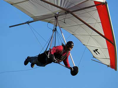 The Skydog Report Thursday April 13th 2017 and another sunny morning with light breezes. We have a lot of tandems and solo pilots and oh so many trying out the new Wills Wing Demos. Mike and Linda Meier are here today along with Dave Aldrich. Lisa Pearson is also here now. The morning flights go until almost ten am. and the wind picks up some so breakfast is on. Around one pm. we form a line of anxious pilots with Michael Robertson of High Perspective, Canada getting off first. Michael has a flight of about one hour. I am off next followed by George Adams, Tom Niblock, Chris Christopherson and many others some trying out the new gliders. George tried an XC flight and landed about eleven miles to the west. The thermals were very strong but the sink was also strong and most of us had the ups and downs throughout the day. My first flight was one of those and went like this. Fay Barber towed up to a good one after some searching and I got off at 1,800 feet and like many of the other days of this past week I rocketed up to 5,300 feet at the ten minute point in my flight and I thought, here we go again and you readers might be getting bored with all the talk about great lift and flying all we wanted BUT NO today would be different. OK so fighting my way down out of the cloud I thought, oh finally out in the clear blue and this is nice and smooth so I will just come back here if I don't find anything out further upwind so I ventured south east to the cloverleaf at 4 and 27 and turned around and wandered back but now I was loosing a lot of altitude and by the time I got back over the Ranch I was down to 1,600 feet and I had left the cloverleaf at four grand so I was in struggle mode but the clouds over the orange groves were not working and soon I was on the ground with only 30 minutes flight time. OK so I can go again and Jimmy Nordle towed me back to launch and I was in the air again real soon. Fay dragged me around again and finally found lift and I pinned off but where did that lift go and I was on the ground with a 16 minute flight. From what I heard later most pilots had a hard time staying up today. The wind had picked up and the sea breeze was moving in so we did not launch again. The evening was full of fun with dinner and a live performance by a great young lady with her guitar and then another couple from Alaska who played their string instruments beautifully. |