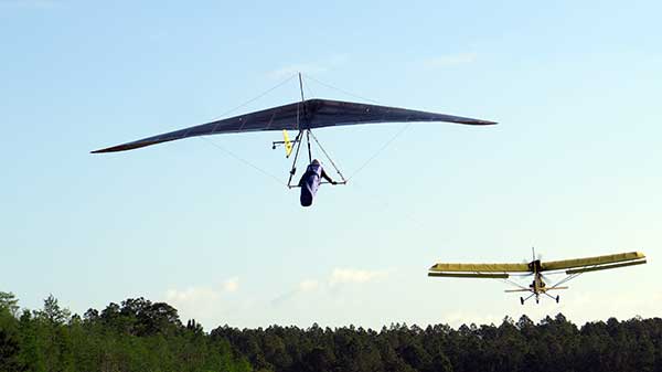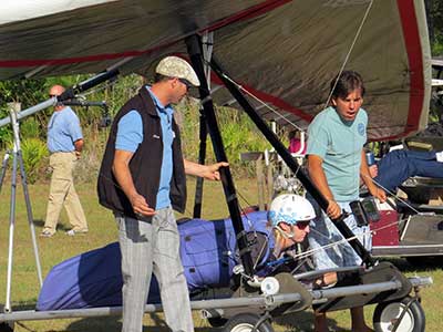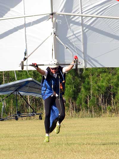 The Skydog Report Tuesday April 11th 2017 and Steve Pearson of Wills Wing fame arrived early last evening with a big load of Demo gliders and it is a beautiful day in Florida at Wallaby Ranch. The morning starts off with light winds and a blue sky and Steve has a new design supine configuration glider for Malcolm to try out and it is a big hit. The new design takes off and lands perfectly and flies great. Photos below. Lots of tandem flights this morning and many solo pilots take to the sweet fresh air. Around 12:30 pilots are eager to get into some thermalling air and the two Laminar boys get off first followed by Chris Christopherson and Tom Niblick and a line of about twenty pilots behind them. Looks like they are all sticking up there and I am about sixth in line. Paul Smith (Smitty) hauls me up into some pretty bumpy air and I almost lock out at 1,500 feet so I wrap my elbow around the high side downtube and the T2-C comes back around behind Paul in the Dragonfly. Paul signals me off at 2,500 feet ato and I am in good lift so I take the first thermal up to 4 grand at 13 minutes as I see my buddies circling all around me. Soon there are many gliders in the air with three tugs getting them airborne. I see Fabiano and Marcello take off to the west as we have a straight east wind of about 12 mph. The odd pilot finds a sink hole but most stick it out for a couple of hours. I was one of those who found sink and landed with a 46 minute flight and topped out at 4,600 feet. The sky was a beautiful deep blue with white cummies everywhere. After lunch at four pm. I started a line and was in the air again at 4:15 and this time Smitty dropped me in a monster that took me up to 6,700 feet at 19 minutes and into the mist. I don't think I have ever turned so steeply and went up like crazy. I just love this sport. Oded was soon in the air and within 15 minutes Oded had gone north and we still had about ten gliders in the air including Jimmy Kolynich on his Atos VRS Rocket Ship. I moved around a bit and watched as others spotted the best lift for me. I was usually hanging out at around five grand or more. I watched as George Adams came in under me after flying to Quest Air and back. George is an amazing pilot. Lee Silver did a great XC of 40 miles around the Green Swamp. Lee has been doing spectacular flights since his participation at the Green Swamp Challenge this year. I landed at six pm with a flight time of 1 hour and 46 minutes. Oded called soon after I landed and asked to be picked up at Quest so John Russell and I made the trip to Quest and back to Wallaby Ranch for the live music and so many flying stories of the great day we all had, Fabiano had a great flight of almost 50 miles and Marcelo landed a little short of that behind locked gates for some extra excitement including police escorts out of there. So many happy pilots with great stories that I can't recall them all so come on down and check things out and try out some of the new Wills Wing Super Gliders. |