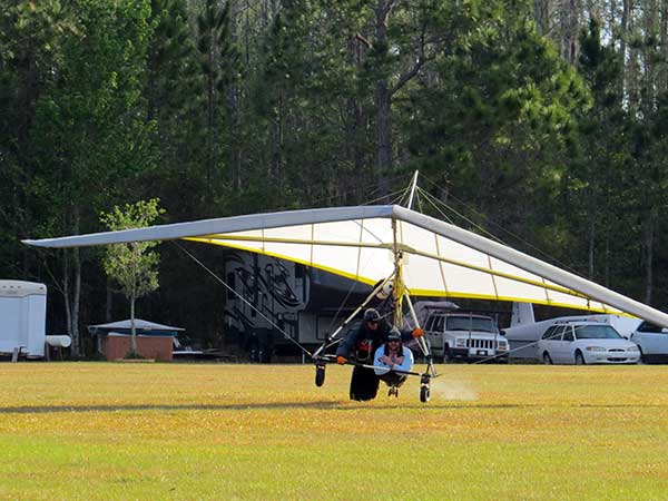 The Skydog Report James Kolynich and I are Flying from Rochester to Orlando Wednesday April 5th and staying ten days until the Wills Wing Demo Days event is over on Saturday evening April 15th. Wednesday April 5th 2017 and we arrive at Wallaby Ranch around three pm. and is it ever hot like 94 degrees and 20 mph + winds. The land sailors are having a good time with Tom Lanning taking a beating when a cleat jammed and the cart tipped over causing a few abrasions. Jimmy and I set up camp in the big cottage and it is great. We expect Moritz to arrive Saturday evening and Oded later in the week and then George Adams may come by. Matt and Christina from the Boston area and Emma and Peter from Australia are here and ready to fly the beautiful Florida Thermals. Wednesday evening the Brazilian group put on a great dinner and we had multiple players on the guitars for our entertainment. Video Below. A great time was had by all. Thursday April 6th 2017 and a cloudy morning with sun breaking through by 11 am. Looks like we may have too much wind until Saturday so we may have to run the land sailors today. Yes we did have a good day on the Blow Carts with the 20 mph winds today followed by a great dinner with Tom Lanning, John Russell and Jimmy Kolynich who had some exciting stories. Photos and videos soon. |