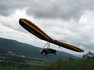 New York June 13 - 18, 2010 Our trip started on Sunday the 13th and we stayed until Friday at 3 pm. Arriving late Sunday, Monday dawned cloudy so we did the hiking thing and Maureen and Eric started painting the cabin on top of H-Port. Tuesday dawned bright and sunny so we headed to Indian cliffs with Patrick and although it was a beautiful day there was no lift to be found but Patrick and a few others took sledders. Wednesday was another cloudy day and hiking we did go and biking later at Penn Yan. Thursday started cloudy but the forecast was for partly sunny later in the day so Patrick set up at H-Port and flew the straight in 10 mph breeze and soared for an hour. Around 3 pm I took off and along with Patrick soared the thermals eventually getting up to 5,400 feet. I stayed up for 3 hours and 15 minutes and should have stayed up longer but in one flush cycle I decided to land on top rather than go to the bottom. Oded Kalir and Scott Wise took off at about six pm and had nice soaring flights. It Turned out to be a wonderful day. Friday we went to Italy Valley to show Patrick the site and the wind was coming in OK but Patrick decided not to try it and I did not want to fly alone so we went home. |