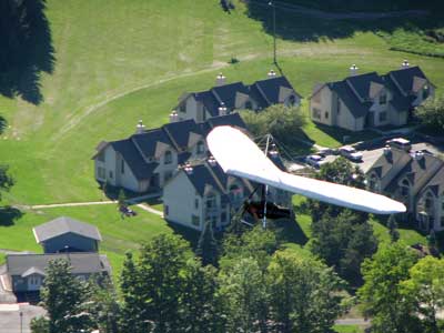 New York August 6, and 7, 2010 We drove to Hammondsport on Thursday evening arriving at 1 am Friday while Patrick, Gilles and Eugene were there on Tuesday and had some sledders except for Eugene who flew Gilles new U-2 for 40 minutes at Dansville. The wind forecast showed WNW so we headed to Harris Hill and arrived by 2 pm and Ed Jowett was setting up so we hurried and got ready. Ed took off first and skied out so I was next and I got good lift up to 3,555 feet and I endured for four hours and 32 minutes watching many others take off and land. The wind shifted from the north for a half hour but straightened out again so all was well in the air. Patrick, Gilles and Eugene had good flights too. Saturday we went to Bristol after a hike at Grimes Glen and when we arrived at Bristol Katrin and Karl were just about to head up to the launch so we followed and when we got to the parking area Karl and a friend offered to carry my glider into launch and I appreciate that so much. I would have had a hard time doing it with Maureen helping. The wind was cycling in and often from the left 20 degrees but Brian took off first and showed us that it was soarable so I got into the air with a bunch of paraglider pilots and Eugene and later Giles and Patrick joined us. I got up to 1,600 feet ato and stayed up for one hour and 13 minutes. Another good day. Checked out Dansville on Sunday and decided to head on home.