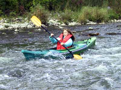 Maureen Takes Mike's Kayak Through Rapids |