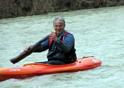 What a great day to start our 2005 season with blue skies and 45 degree F. temperatures. Maureen and myself along with Mike Kovach started at Fanshawe dam in the east end of London Canada and paddled for four hours ending up at the boat ramp at Wonderland Road and Riverside drive. During our trip we came across two other kayakers who we had not met before and enjoyed paddling the rest of the trip with Ty and Mark. The water level was about two feet above summer levels making for a good current and many fun rapids. Mike, Mark and Ty all have very short kayaks and love to play in the rapids and standing waves.