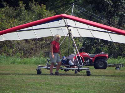 A wonderful weekend of flying with climbs to 5,000 feet and Linda Salamone from Rochester New York having a Duration flight of five and one half hours. Antique gliders and seventies costumes were a real hit. Scooter towing took place in the evening on Saturday and a fine meal catered by Joe and family. |